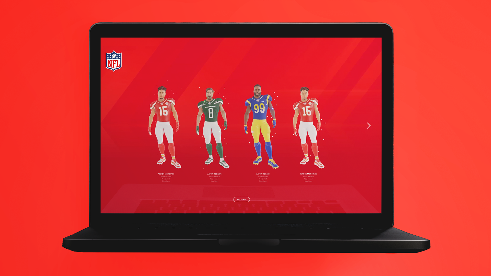 Living Legends is a 3D collectible experience created in partnership with the NFL, featuring real players as multi-animation, AR-ready digital collectibles. Designed for fast load times and high-detail performance, the experience was built with Three.js and included a custom pack opening flow to elevate each drop. This project blended Animation, AR, 3D Design, and Art Direction into a fully immersive fan experience.